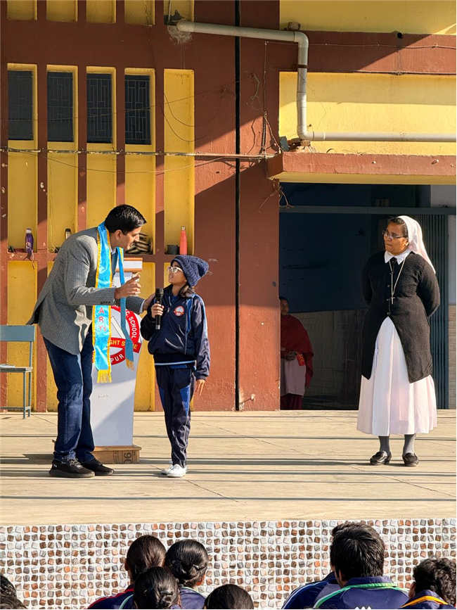 St. Mary’s Convent Sr. Sec. School organized an enriching health session during the morning assembly. Dr. Ashish Chauhan, Gastrointestinal Surgeon, addressed students on Physical, Mental, and Social Health, inspiring them to adopt healthy habits and balanced lifestyles.