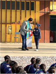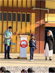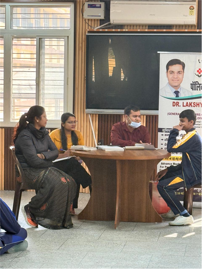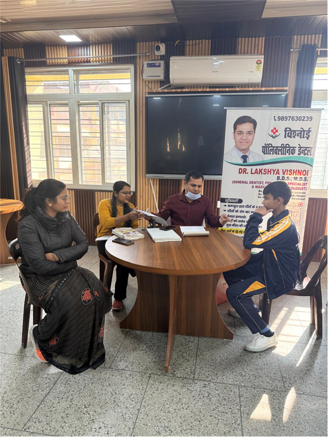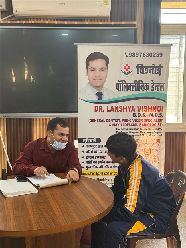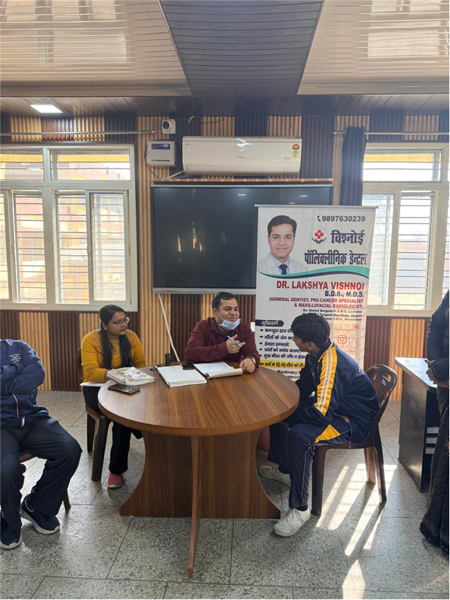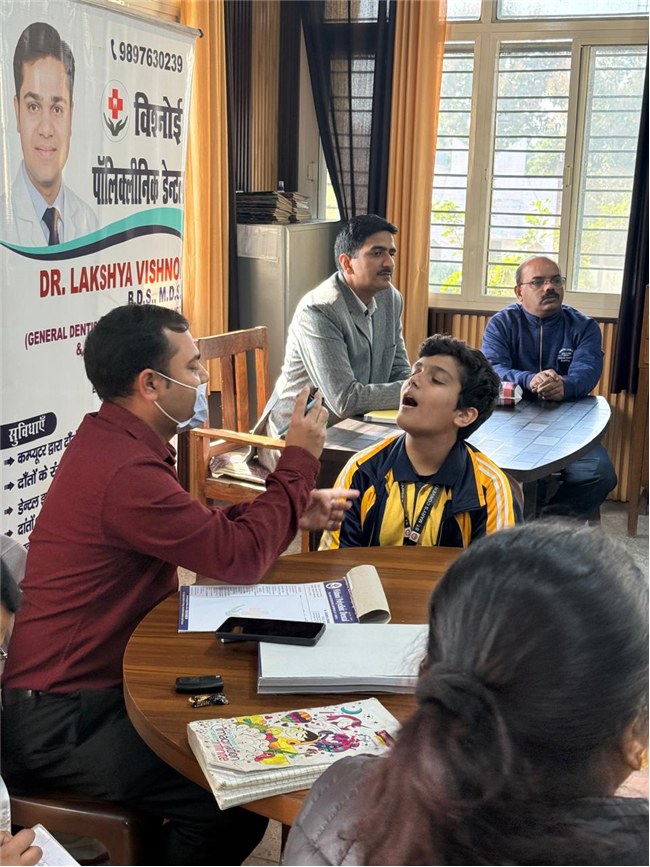 This was followed by an Oral Hygiene Check-up Camp conducted by Dr. Lakshya Vishnoi and his team, who checked the oral health of students of Classes VI–VIII and guided them on proper dental care and prevention.