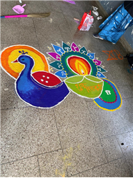 The Rangoli Competition is a vibrant celebration of creativity, culture, and color. Participants will create beautiful rangoli designs using traditional materials such as colored powders, flowers, diyas, and other decorative elements. This competition aims to showcase artistic talent while promoting the spirit of Indian tradition and festivity.